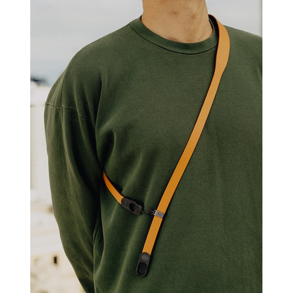 カメラストラップ特有のスプリットリングや縫製などの引っ掛かりを極力削ぎ落とし、ストラップとアンカーハウジングが一体化した美しいデザインを実現。