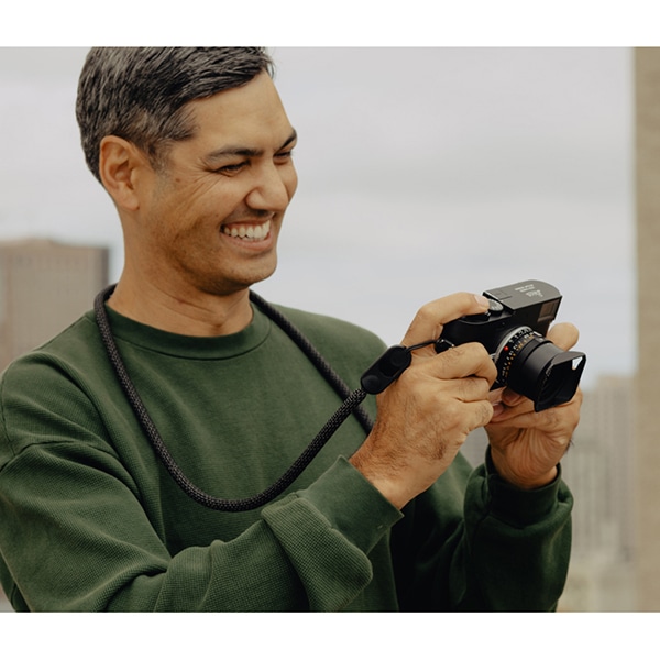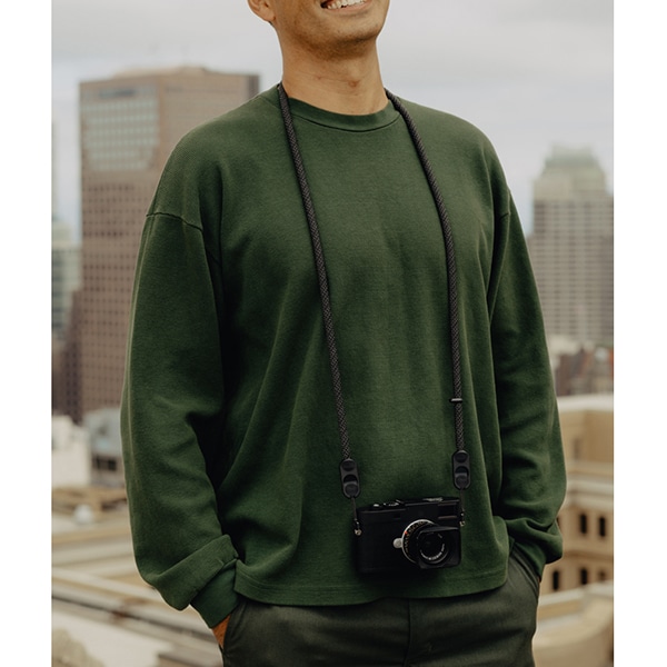 「フォーム ロープ」は、長さ調節機構を省いた、ミニマルでスタイリッシュな新しいカメラストラップです。市販のクライミングロープや目立つスプリットリングを使わず、独自開発のロープと新設計のアンカーハウジングを採用することで、継ぎ目のない美しいフォルムとスムーズで快適な使用感を提供します。