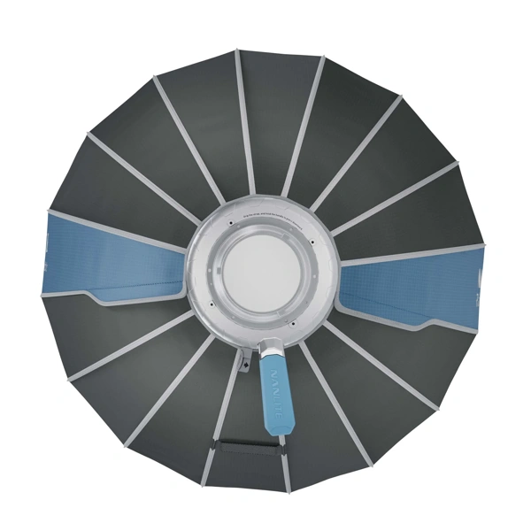 NANLITE SB-RP90は革新的なクイックリリース機構を搭載した直径90cmのソフトボックスです。FS-300BやFC-500BなどのボーエンズマウントLEDライトに装着することで、柔らかで広範囲な光を作り出します。