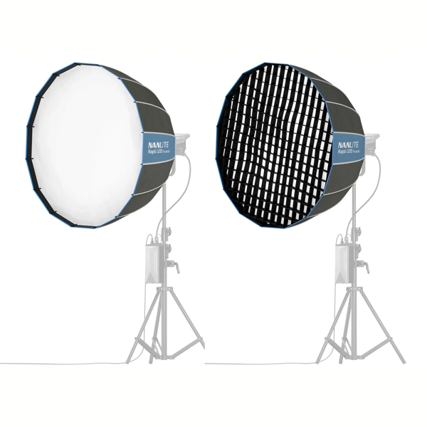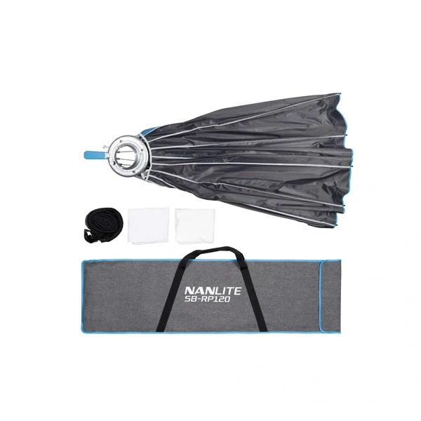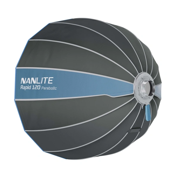 NANLITE SB-RP120は革新的なクイックリリース機構を搭載した直径120cmのソフトボックスです。FS-300BやFC-500B、Forza 720BなどのボーエンズマウントLEDライトに装着することで、柔らかで広範囲な光を作り出します。