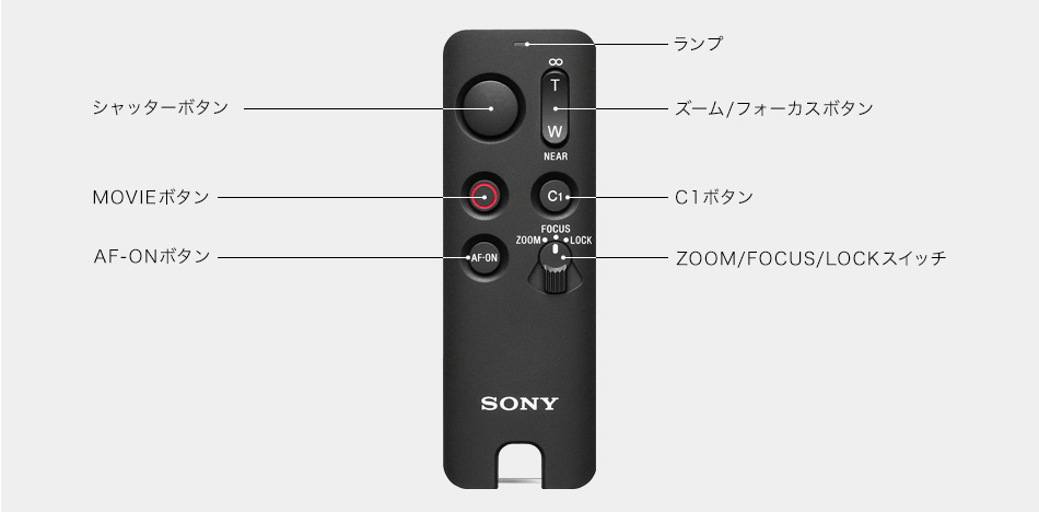 また、前面パネルには、シャッターボタン、MOVIEボタン、AF-ONボタン、C1ボタン、ズーム/フォーカスボタンが搭載されており、動画撮影や静止画撮影を片手で直感的に行うことができます。