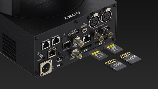 CFexpress TypeA/SDXCメモリーカードに対応したデュアルスロットを搭載し、カメラ内部での映像収録が可能。4K 60p/4K 24pなどでの収録のほか、4K 120p(*)によるハイフレームレート撮影にも対応しています。