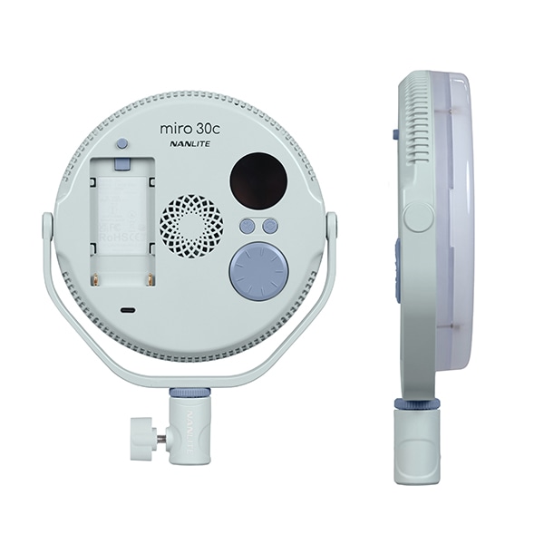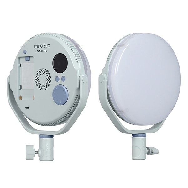 NANLITE miro 30cはコンパクトかつ多用途な円形LEDライトです。miro 30cは直径約18cmの円形デザインとマグネット式ディフューザーにより、美しく柔らかいキャッチライトを表現します。 またmiro 30cは白色のCCT(色温度)モードに加え、36000色を表現するHSIモードと多彩な照明エフェクトを備えているため、Youtube撮影、Live配信、MV、PV用の演出など様々な用途で活躍します。