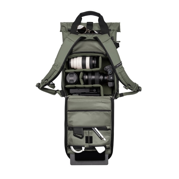 バックパネルは大きく開き、バッグをおろさずに機材にアクセスできるよう、サイドパネルが設けられています。さらにジッパープルの形状を見直し、開閉がスムーズになりました。