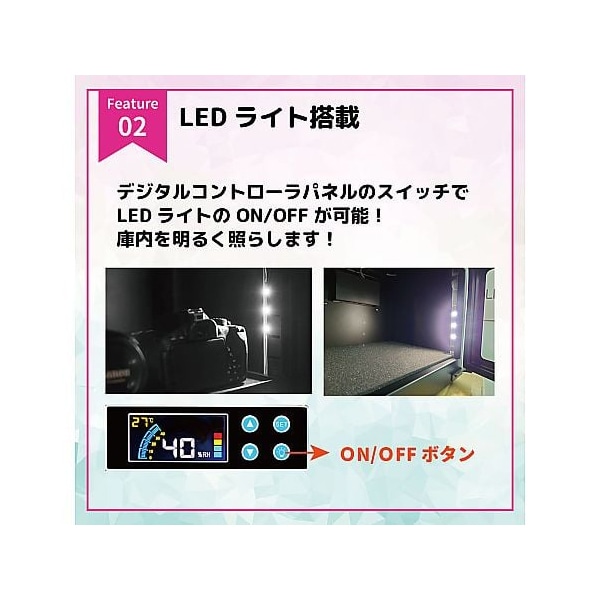 | 内寸(mm / L) | 398×335×575(80L) | 398×335×685(100L) | 748×420×695(220L) |
