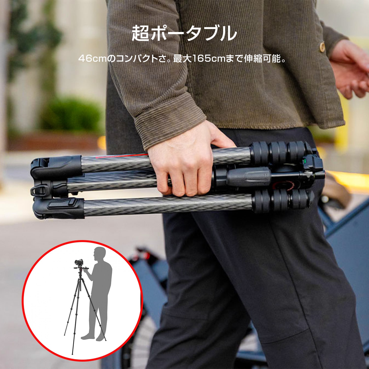 十分な高さと収納時のコンパクトさを兼ね備え、特にミラーレスカメラとの相性が良い三脚です。