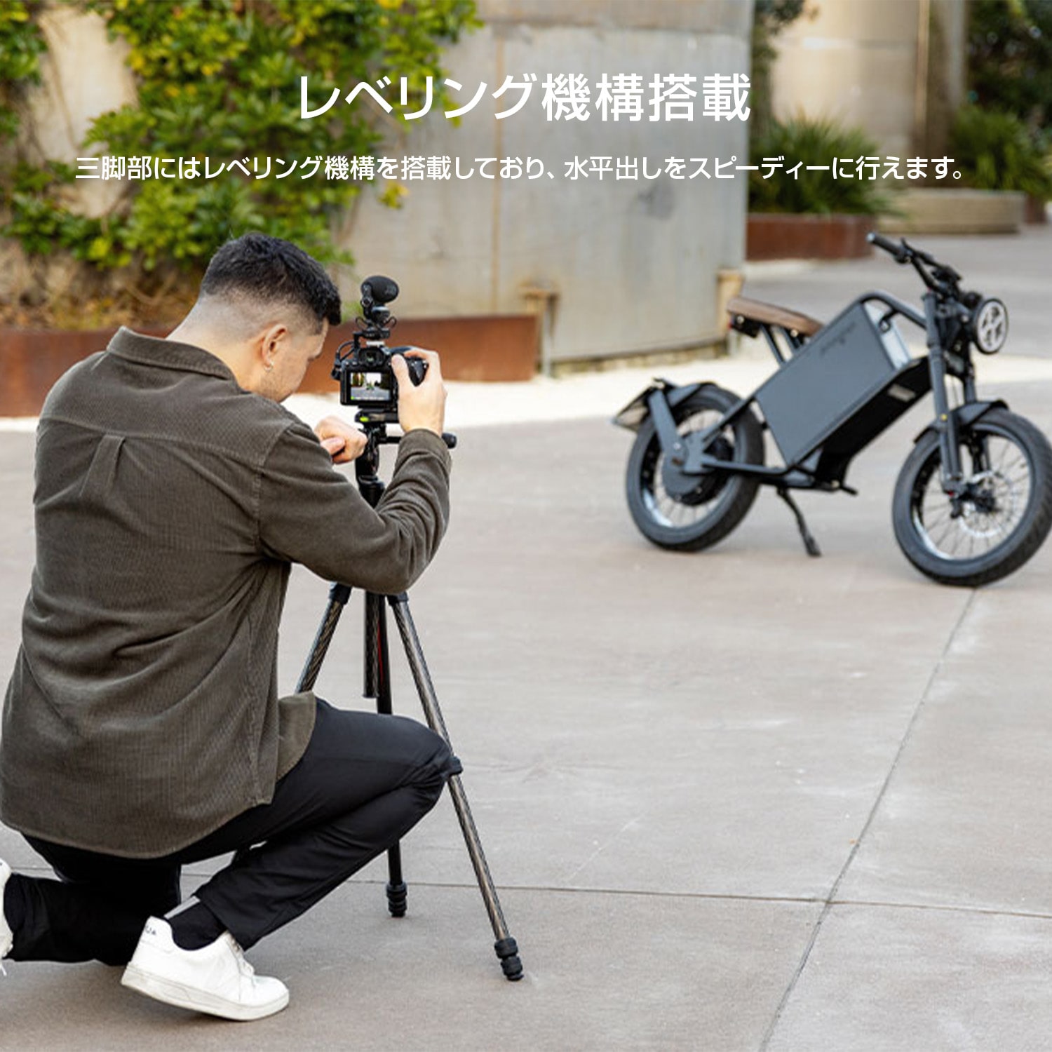 脚部分は雲台を包み込むように逆向きに折りたためるトラベルタイプで、コンパクトに持ち運べるのが特徴です。パイプ素材はカーボンとアルミからお選びいただけます。キャリングケースも付属するため、旅行用の三脚に最適です。