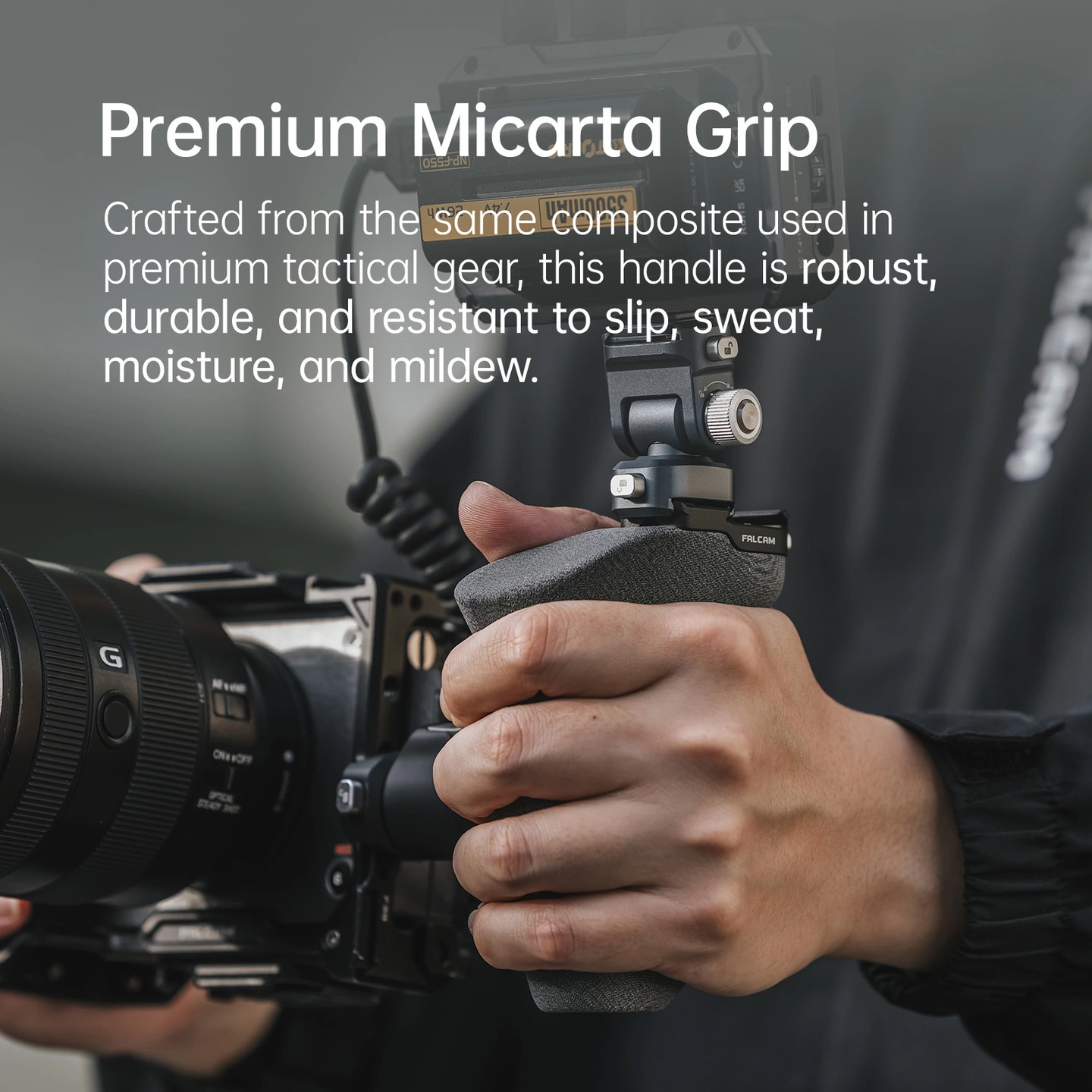 F22クイックリリースに対応した左手用サイドハンドル。ワンタッチで着脱でき、セットアップ変更を素早く行えます。高さ調整と360°回転により、撮影スタイルに合わせた柔軟な操作が可能。ミカルタグリップで安定したホールド感を確保し、長時間の使用でも負担を軽減します。マグネット内蔵レンチ付き。