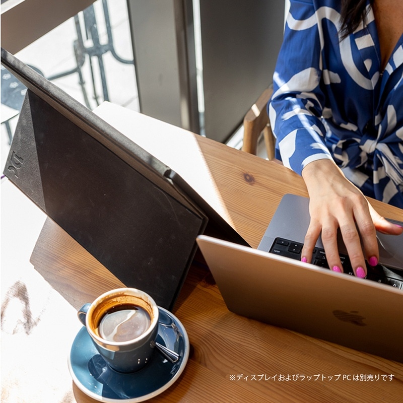 移動中にディスプレイをしっかりと保護する、スマートで持ち運びやすい設計です。ケースの内側にはマイクロファイバー素材を採用しており、ディスプレイの画面を優しく守ります。
