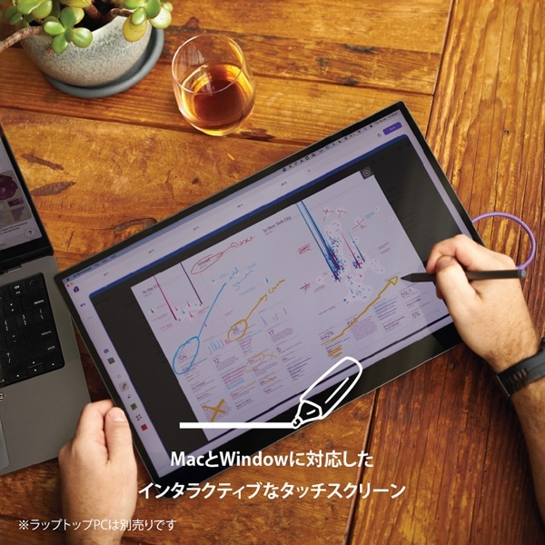 macOSとWindows OSに対応したタッチスクリーンとLiveTouch™(ライブタッチ)機能により、ペンや指での操作がスムーズかつ正確に行えます。特にMacOS向けに最適化され、スケッチ、ドローイング、ドキュメントのピンチやズーム、マークアップが快適に行えます。