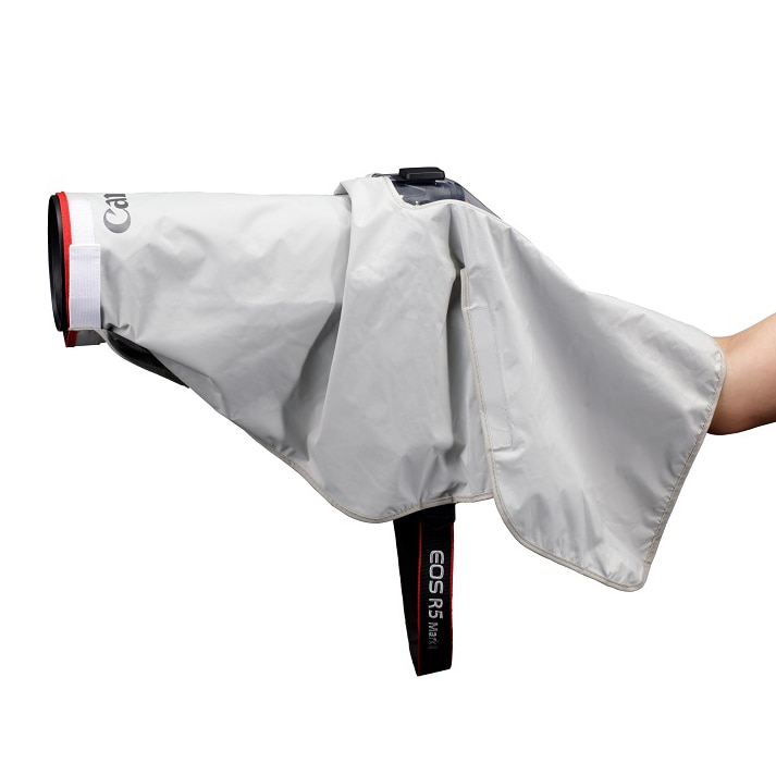 EOS Rシリーズのカメラに対応するレインカバーのSサイズです。カメラのアクセサリーシューに固定して使用し、アクセサリーシューおよびマルチアクセサリーシューに対応しています。