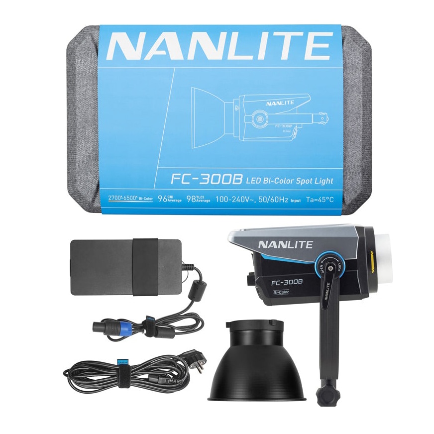 NANLITE FS-300Bは最大350Wの高出力ながら、コストパフォーマンスに優れたバイカラースタジオライトです。リフレクター装着時は、38720lux(5600K,1m)の明るさを実現。