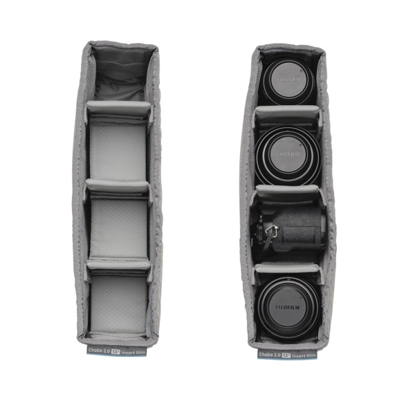 ワイドにはフルサイズの一眼レフボディとレンズ数本、スリムにはミラーレスカメラボディとレンズ数本を収納可能です。