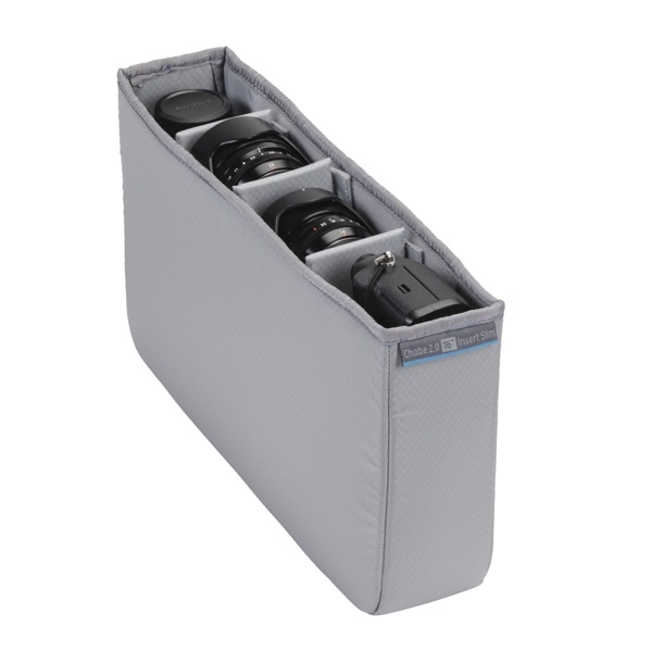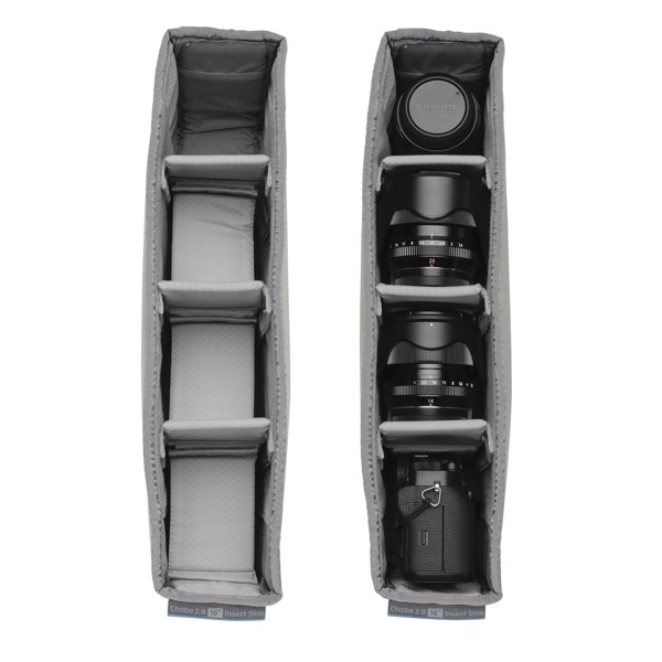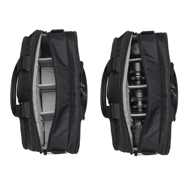 ワイドにはフルサイズの一眼レフボディとレンズ数本、スリムにはミラーレスカメラボディとレンズ数本を収納可能です。