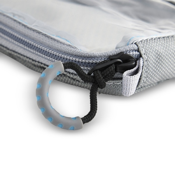 YKK製のジッパーを採用し、グレーとブルーのジッパープルは掴みやすく視認性にも優れています。