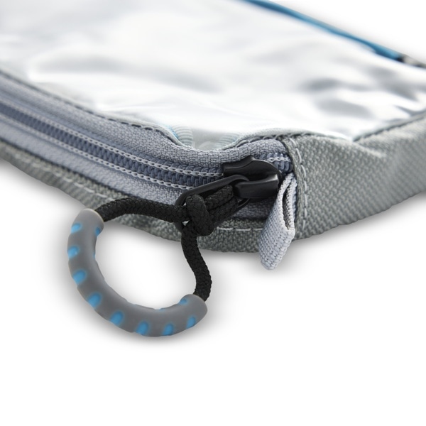 YKK製のジッパーを採用し、グレーとブルーのジッパープルは掴みやすく視認性にも優れています。