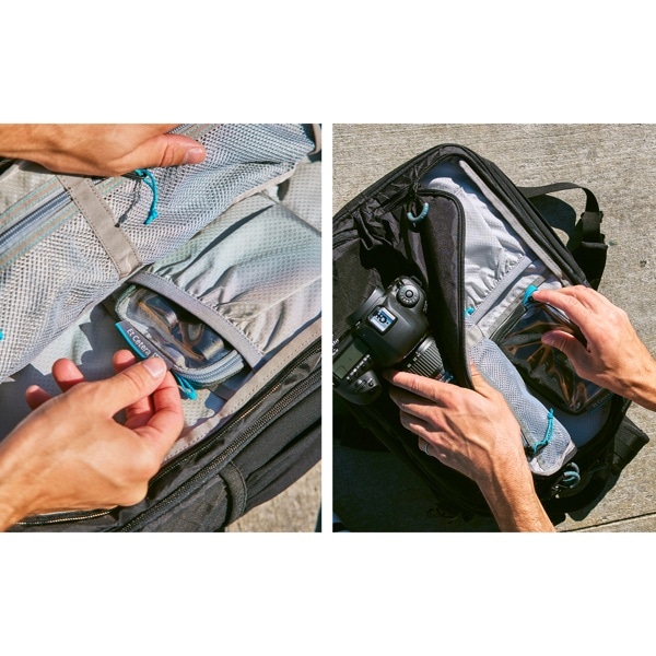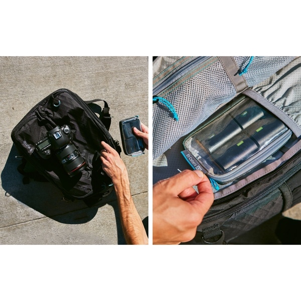 モバイルバッテリーやケーブル、ヘッドホンなど、さまざまな撮影用アクセサリーや日用品を収納できます。2L、1L、M、S、XSの5サイズ展開。