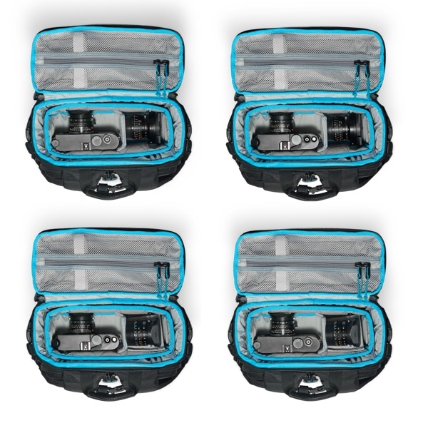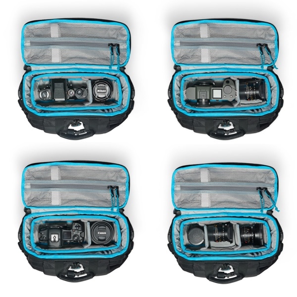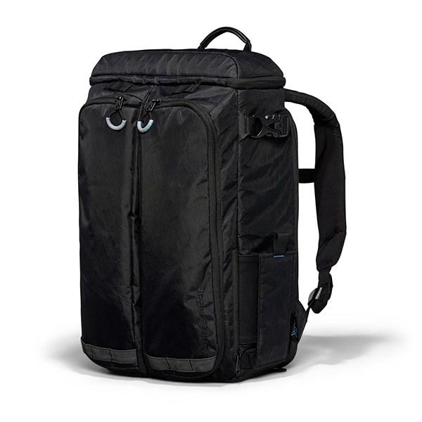 バックパックの上部コンパートメントに収納し、より多くの機材を持ち運べるようにします。小型のミラーレスカメラやレンズなどの収納に最適です。