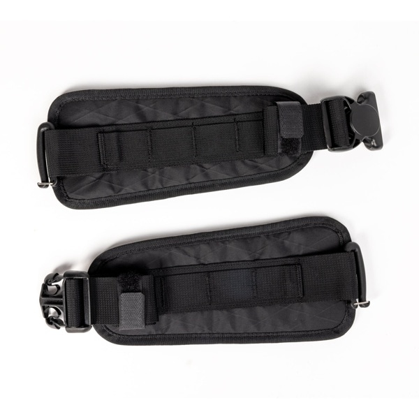 バックパネルの裏側には16インチまでのノートPCと13インチまでのタブレットが収納できるスリーブ付き。ノートPCやタブレットの落下を防ぐため、FIDLOCK社製のマグネット式バックルで留められます。ほか、ジッパー付きのメッシュポケットが2つ備わり、バッテリーやケーブルなどのアクセサリーの収納に最適です。