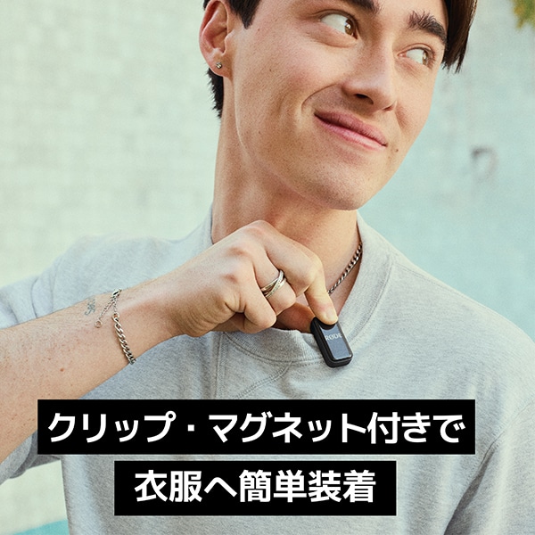 送信機には、衣服の襟などに挟めるクリップと、クリップでは取り付けにくい場所へセットできるマグネットアタッチメントが備わっているため、簡単に収録の準備が完了します。