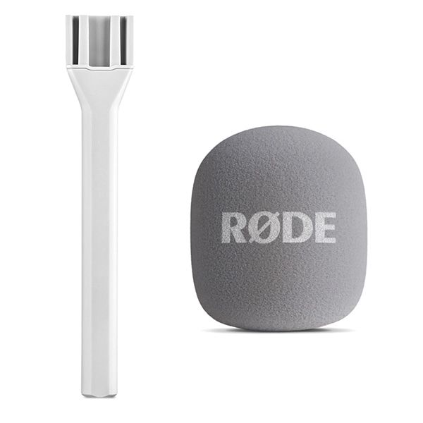 インタビュー撮影の場面などで活躍するアクセサリーで、風切り音や破裂音などのノイズを軽減するスポンジのウインドシールドが付属しています。