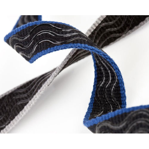 幅2.5cmと細身で、表裏両面にシリコンの滑り止めがプリントされています。バックパック側に装備されたフックに引っ掛けられる丸環がついています。長さは56cm。