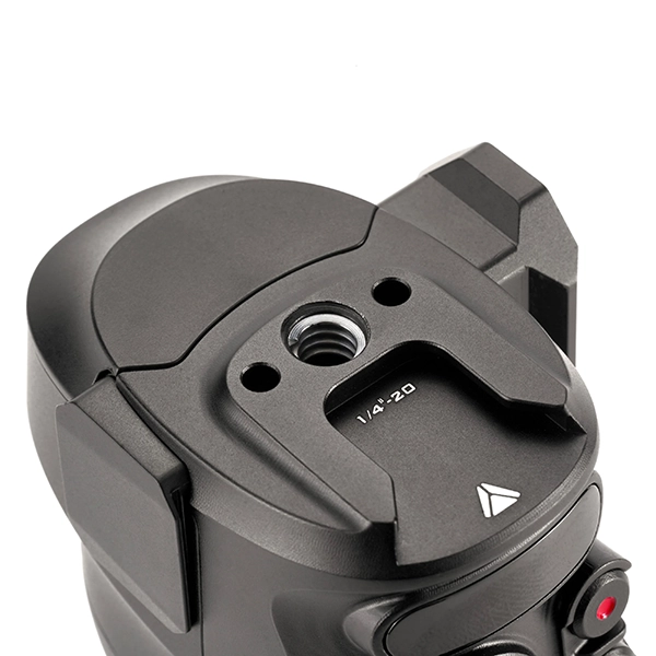 ハンドルには1/4″-20ネジ穴があり、ショルダーリグのセットアップに直角ロゼットアダプターを取り付けるのに最適です。