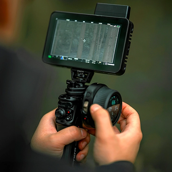 ハンドルの上部には1/4"-20のネジ穴とコールドシューレシーバーがあり、オプションのコールドシューマウント(TA-AMB)に外部モニターを取り付ける事でフォーカスプラーに最適なステーションを作ることができます。