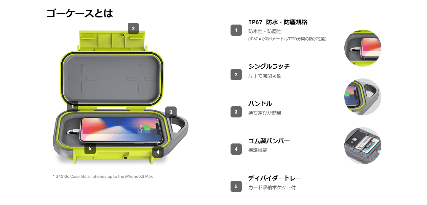 ・IP67:水深1メートルで30分間の水没に耐えうる防水性