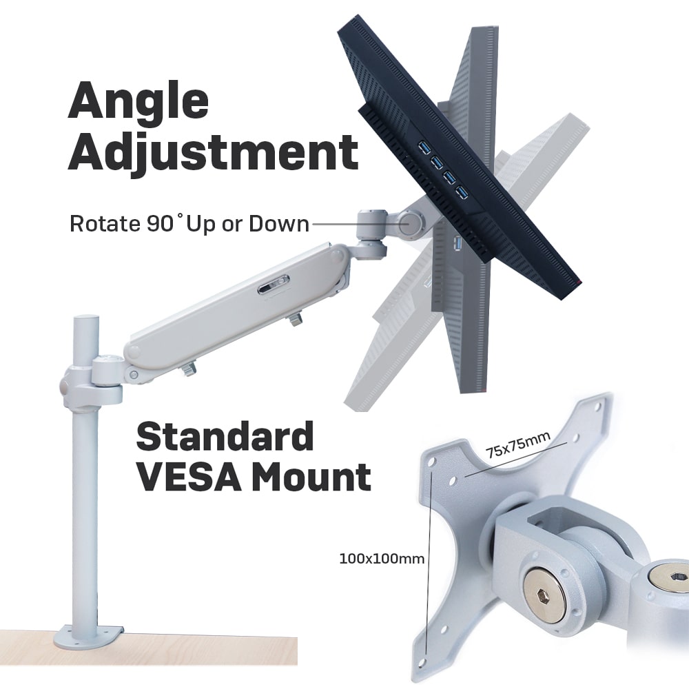 ・ 高機動性で、画面の位置を上下左右に調整でき、快適な角度を簡単に調整可能・VESA規格に対応したネジ穴(75mm x 75mm、100mm x 100mm)、27 ~ 34インチのモニターに適用
