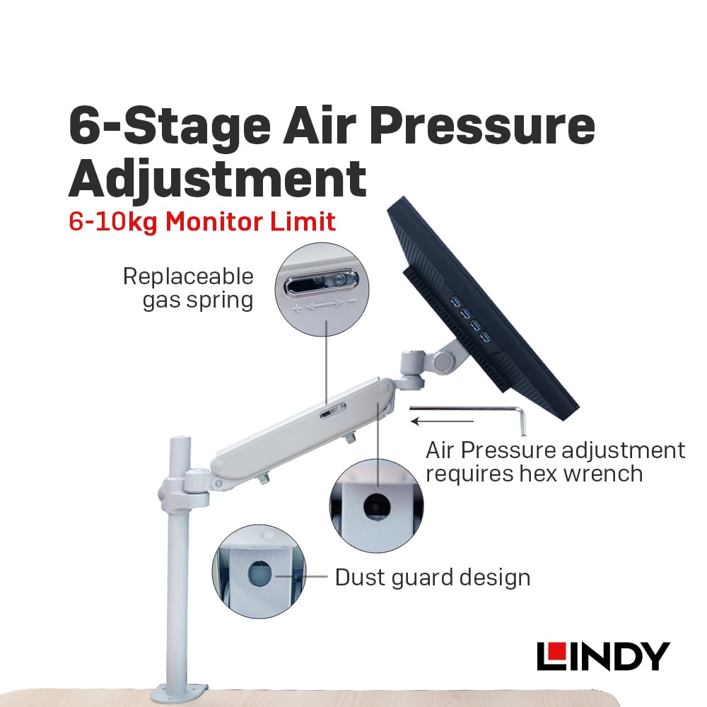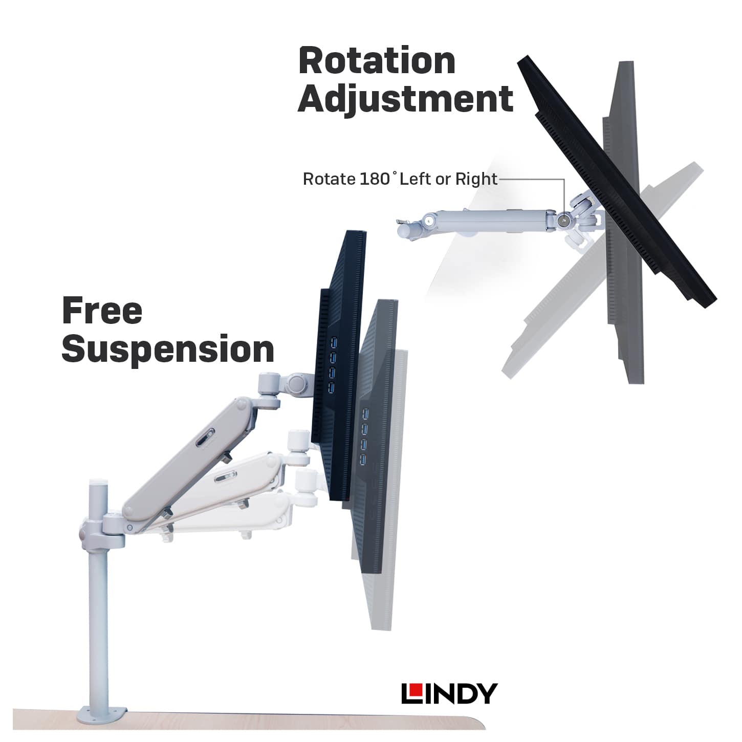 ※商品の使用及び長期間調整されていない場合、調整する前にモニターををアームに取り付けて頂き、モニターをアームに取り付けてから微調整を行う場合、取り付け中に疑問点や回りにくい場合、リンディーカスタマーサービス部門(support@lindy.co.jp)までお問い合わせください