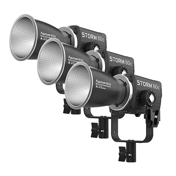 Aputure STORM 80c 3灯キットは、STORM 80cの灯体3灯と多様なライティングで使用できるアクセサリーが含まれた3灯キットです。