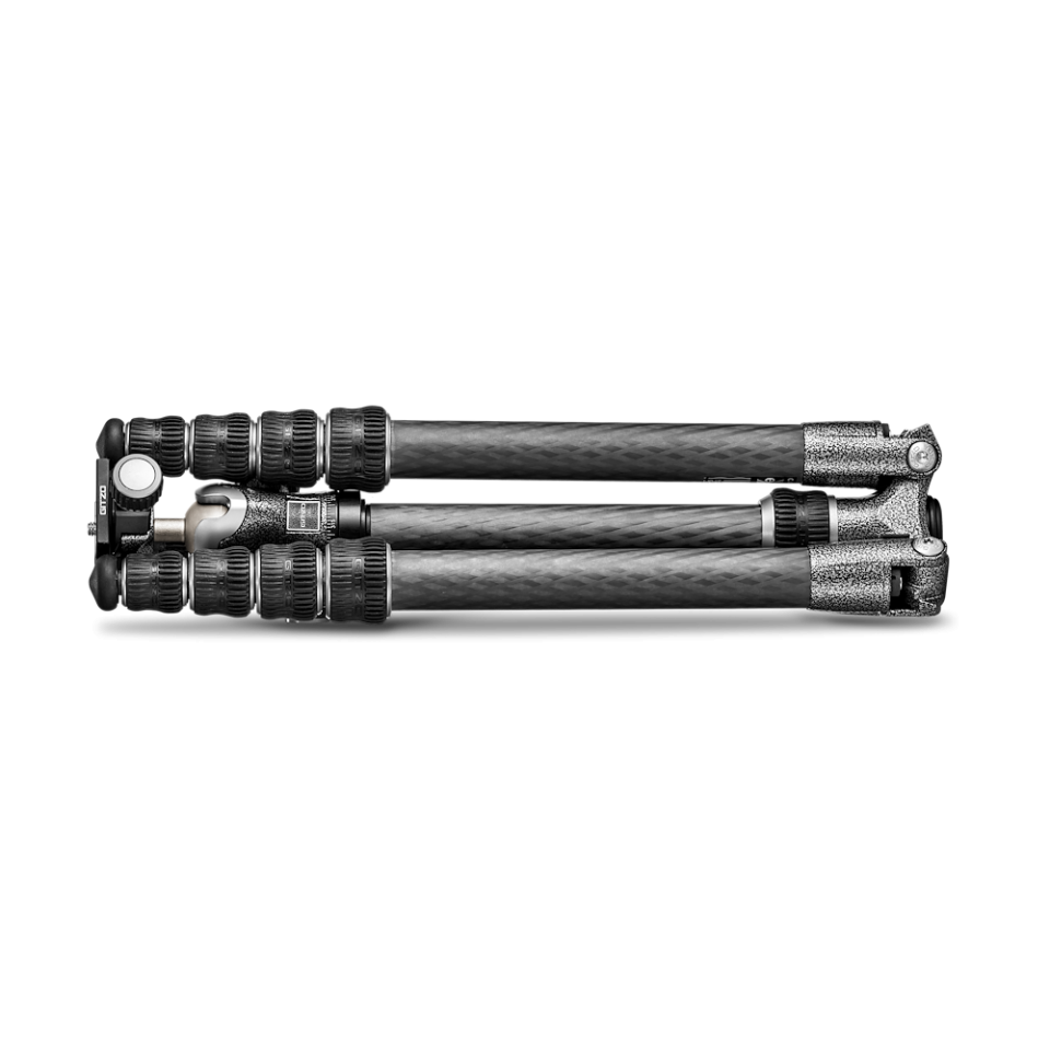 ジッツオGT1555Tトラベラー三脚1型は、超コンパクトな5段カーボン三脚で、ジッツオが発明した180°折りたたみ機構によって脚がセンターポールや別売雲台の回りに上向きにたため、縮長わずか35.5cmになります。