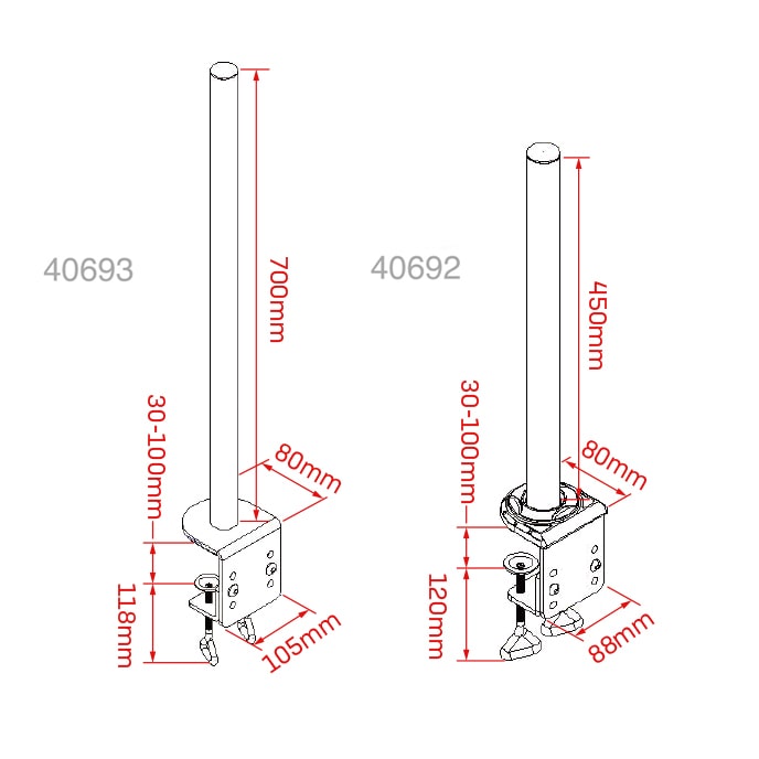 4.ロッドクランプ(設置可能なデスクトップ厚さ30mm ~ 100mm)
