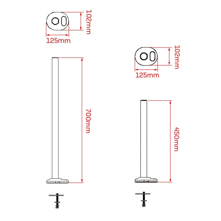 4.グロメットクランプロッド(設置可能なデスクトップ厚さ30mm ~ 50mm、穴の直径80mmは目安)