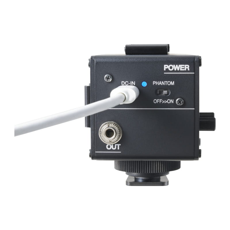 モバイルバッテリー等の外部電源を接続することにより、RチャンネルのXLR端子にファンタム電源を供給する事が可能です。ファンタム電源駆動のマイクを使用することが可能になり、撮影環境に応じて使用出来る機材の選択肢が広がります。