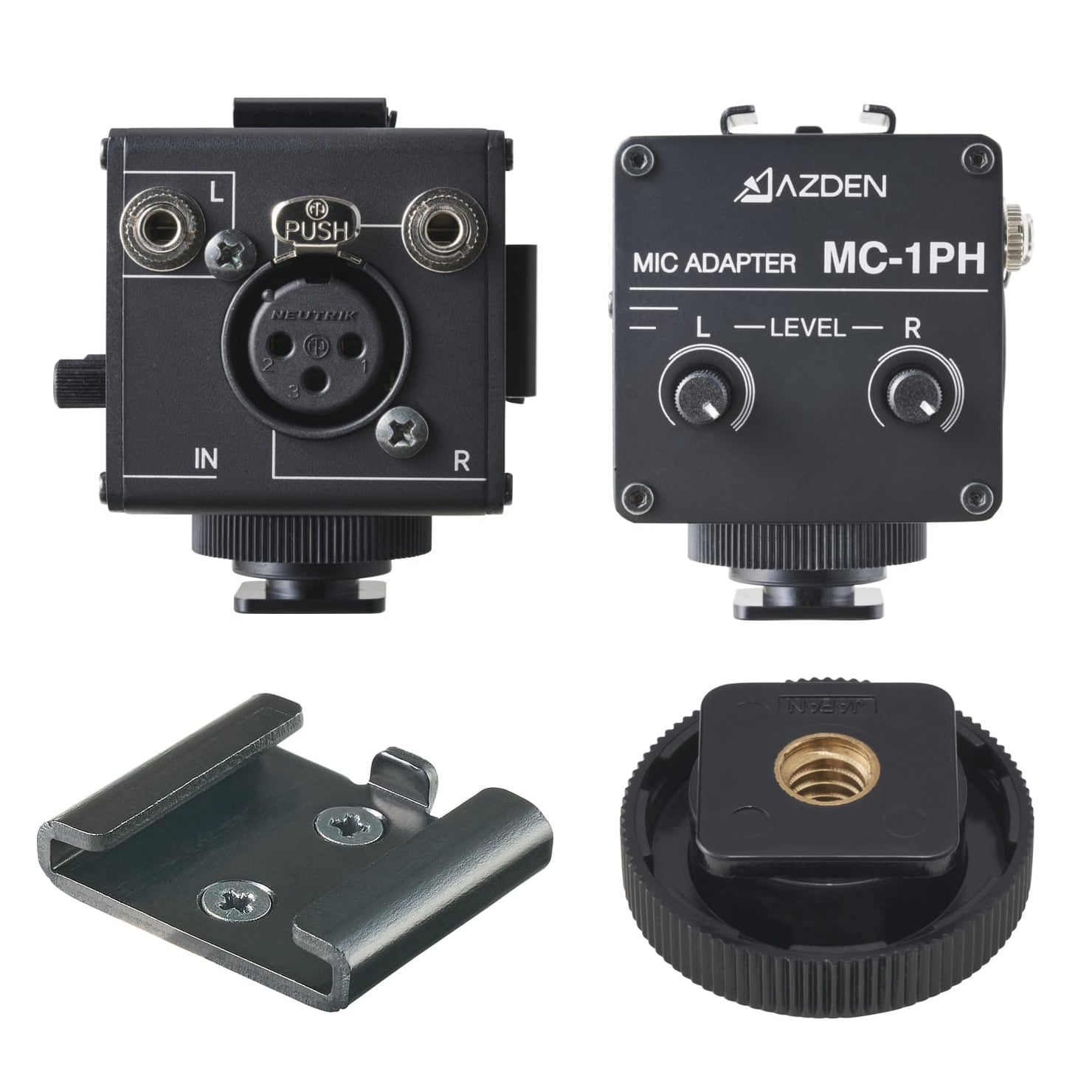 MC-1PHは、YouTuberや撮影から録音までを少人数の撮影環境で行う方をターゲットにしており、カメラのみならずケージやハンドルへの装着を前提としたデザインが特徴的です。本体の各6面には最も適した位置に、入出力端子、ボリュームツマミ、コールドシュー、シューアダプターが配置されております。