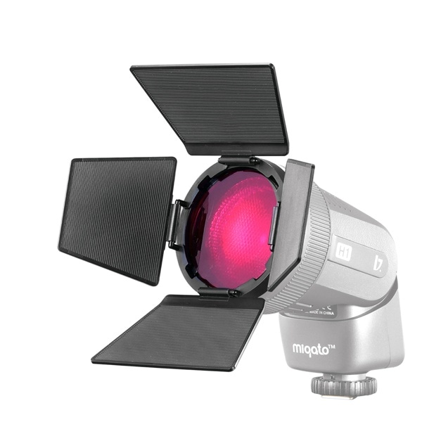 バーンドアと6種類のカラーフィルター、ハニカムグリッドのセットです。フィルターとグリッドを併用することも可能です。
