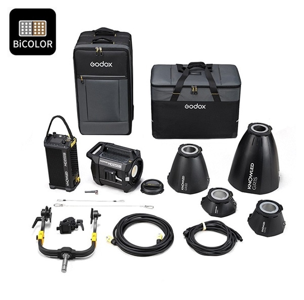 最大出力1400Wのパワー、高い演色性、IP54の防塵防滴性能、高精度な複数の制御システム、高度な放熱システム加え、革新的なまったく新しいGマウントにより、安全や省エネに配慮した撮影環境を実現する大光量バイカラーLEDライトです(色温度:2800-6500K)。標準KIT(MG1200Bi)の他、標準内容にハードケース仕様のMG1200Bi-H、リフレクター増補版のKIT(MG1200Bi-K1およびK2)、リフレクターKITのハードケース仕様(MG1200Bi-K3)などがあります。