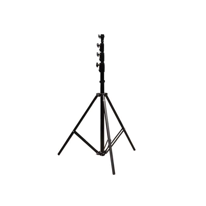 エアークッション内蔵のライトスタンドです。エアークッション機構によりポール収納時の衝撃を緩和します。アルミニウム素材と丈夫なロッキング機構により、スタンドのセットアップ、折りたたみなどの一連の操作がスムーズに行えます。設置部分のメス受けは国内流通のライティング機材に合わせ、上または横両方向に16.5mmのダボを差し込めるようになっています。サイズは3mと4m の2サイズです。※エアークッションにより、繊細な造りになっていますのでご使用の際にはご注意ください。