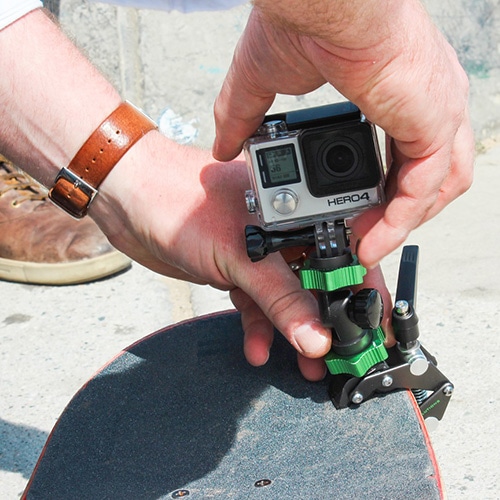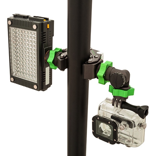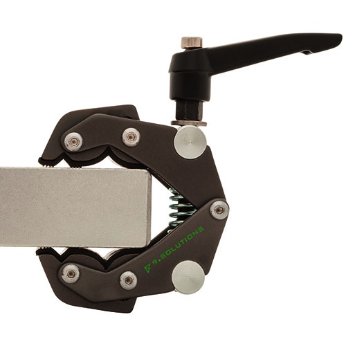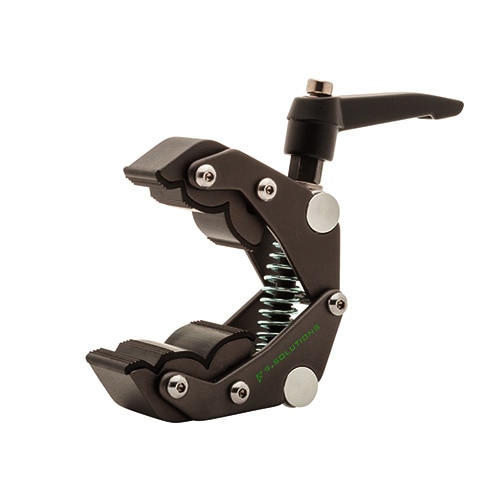 セイバークランプのミニサイズです。クランピング部の形状はそのままで、3/8インチネジ穴が1つ、1/4インチネジ穴が2つ付いています。主な仕様