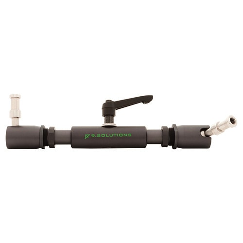 両端にボールジョイントが付いており、中央のレバーを回すことでジョイント部の固定・開放が操作可能です。ボールジョイント部は3/8インチネジ穴付5/8インチオスダボとなっており、様々なタイプのクランプと組合わせて使用することができます。主な仕様