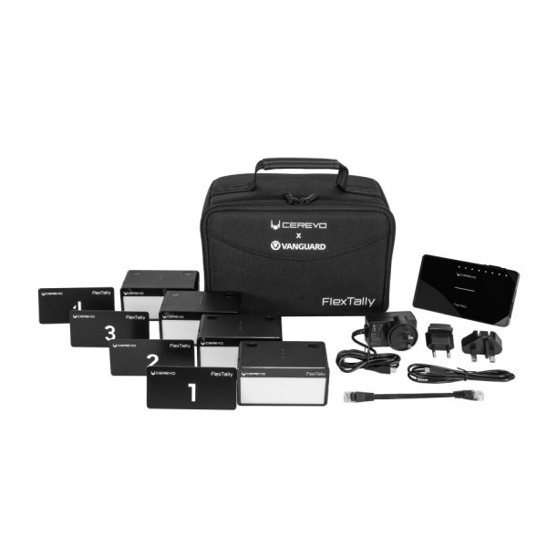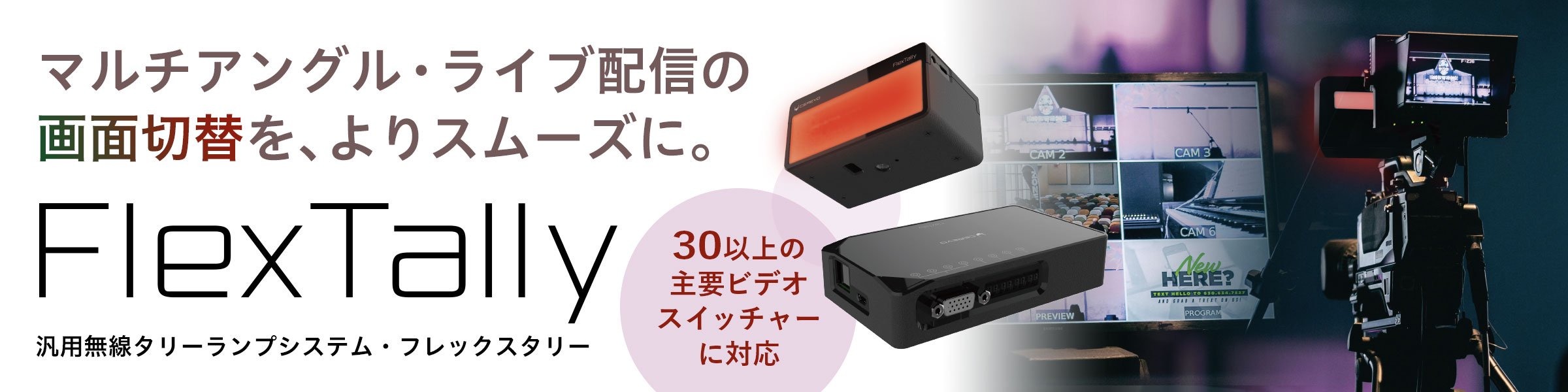 FlexTallyは、カメラに取り付ける4台のランプと、ランプの点灯をコントロールするための小型のステーションが1セットになったタリーランプシステムです。2021年12月入荷分より個装箱をキャリーバッグへ変更し、商品名FlexTally BP(CDP-FT01A-BP)となりました。