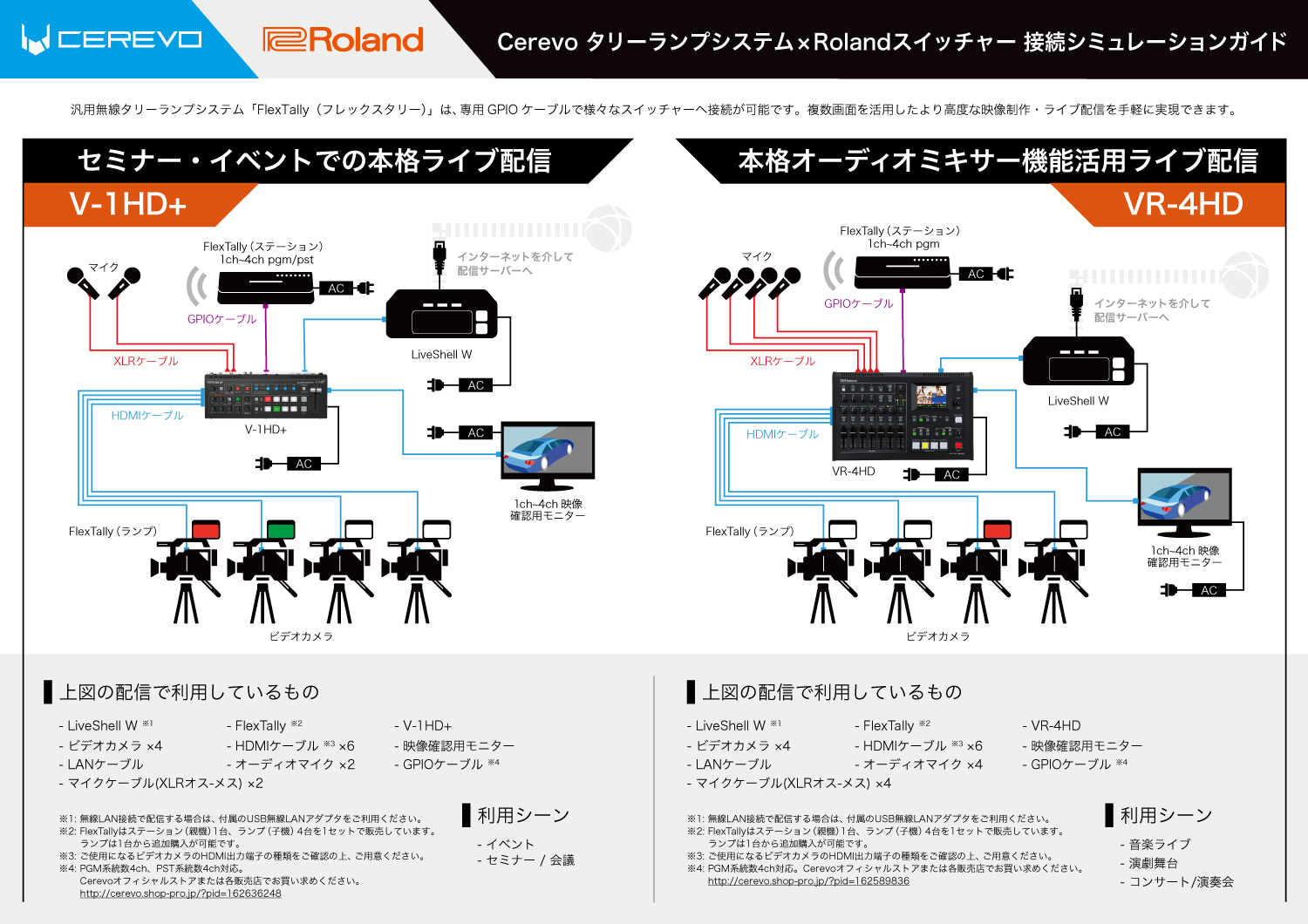 各社主要スイッチャーに対応しており、Atemシリーズとは、LANケーブル接続、Roland-Vシリーズとは、専用GPIOケーブル等で接続も容易です。各社スイッチャーおよびvMix, Wirecast等のソフトウエアスイッチャーにも対応しております。>>対応ビデオスイッチャー一覧