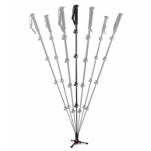 FLUIDTECH搭載のビデオフルード一脚。3D fludity (パン・ティルト・スイベル操作)に加え、パン操作だけを有効にさせるロック機構が搭載されています。カーボンファイバー製の5段モデルで、軽量かつ、格納時にはコンパクトになります。雲台取付ネジは1/4'', 3/8''兼用タイプになります。
