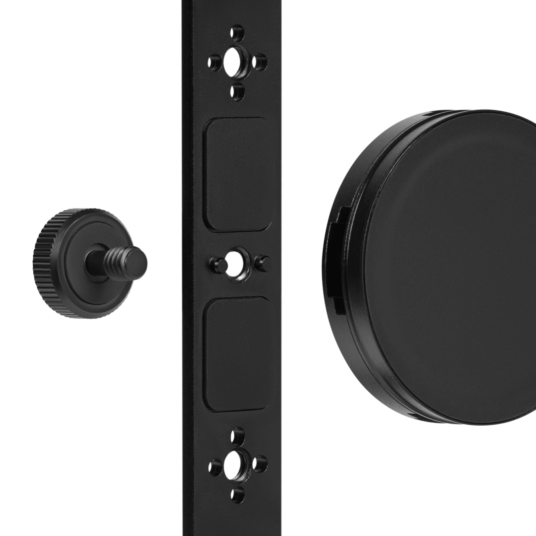 複数のコールドシューマウント、1/4インチネジ穴、3/8インチネジ穴に加え、アンチツイストロックに対応した1/4インチネジ穴も備えているため、マイク、ライト、ハンドル、アーム、三脚などの幅広いアクセサリー群を取り付けることが可能です。