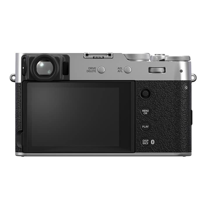 チルト式フラット液晶モニターを搭載。収納時はボディ背面と完全にフラットになり、100VIのデザインに完璧にマッチします。ハイアングル時のチルト角度が前機種X100Vの30°から45°に改善、機能性が向上しています。