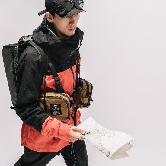 行動中、素早く出し入れしたいギアを収納するためのチェストリグをThe 3rd Eye Chakra Field Bag Worksが再構築して生まれた機能的なギアキャリーシステム、The Rib Rig #001。歩く/登る/攀るといったフィールドでのあらゆる動作に対応する汎用性が高いギアキャリアとして、バックパックとの併用も前提に、可搬性を保ちつつも関節可動域への干渉を避け、同時に足下の視界を確保や排熱性も意識したデザインを構築することで、快適な使用感と体の動きへの追従性を追求しました。