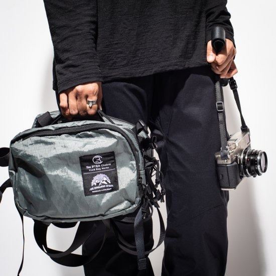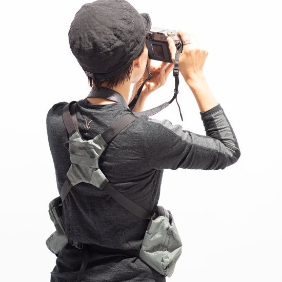 行動中、素早く出し入れしたいギアを収納するためのチェストリグをThe 3rd Eye Chakra Field Bag Worksが再構築して生まれた機能的なギアキャリーシステム、The Rib Rig #001。歩く/登る/攀るといったフィールドでのあらゆる動作に対応する汎用性が高いギアキャリアとして、バックパックとの併用も前提に、可搬性を保ちつつも関節可動域への干渉を避け、同時に足下の視界を確保や排熱性も意識したデザインを構築することで、快適な使用感と体の動きへの追従性を追求しました。