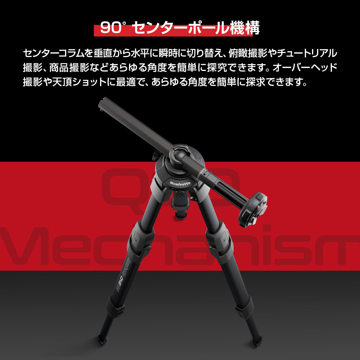 カメラプレートの取り付け面を、横位置(ランドスケープ)から縦位置(ポートレート)に瞬時に切り替えることができる「ポートレート/ランドスケープ ソリューション」を搭載。ポートレート撮影や風景撮影はもちろん、縦型サイネージや SNS 向けの縦構図にも柔軟に対応でき、撮影を中断することなくスムーズに構図変更がおこなえます。